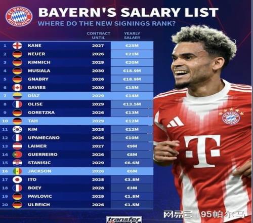 毋庸置疑,迪亚斯1400万欧元的年薪相对于利物浦时期实现了大飞跃,但就拜仁队内而言,个人待遇仅仅位列第7位。结合每84分钟造1球的效率和场均评分超过8分的表现,这笔交易极具性价比。