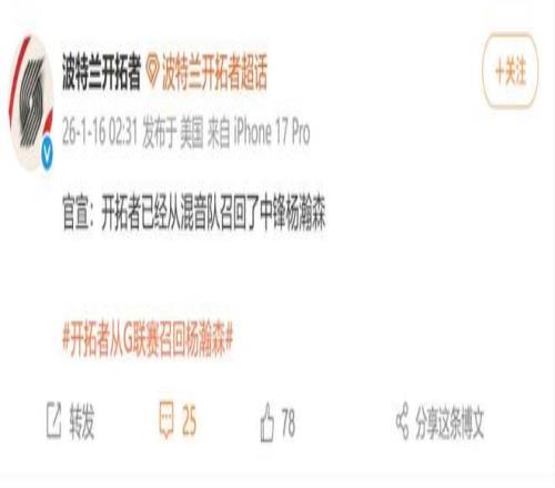 昨天在发展联盟率领撕裂之城混音主场123-99战胜俄克拉荷马城蓝后,砍下全队最高22分7板3助1断2帽的杨瀚森在对阵老鹰前被召回。