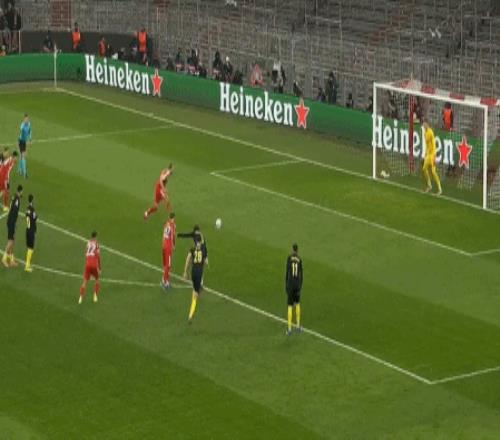 第52分钟,奥利塞角球传中,凯恩近距离头球破门,拜仁终于打破僵局,1-0!